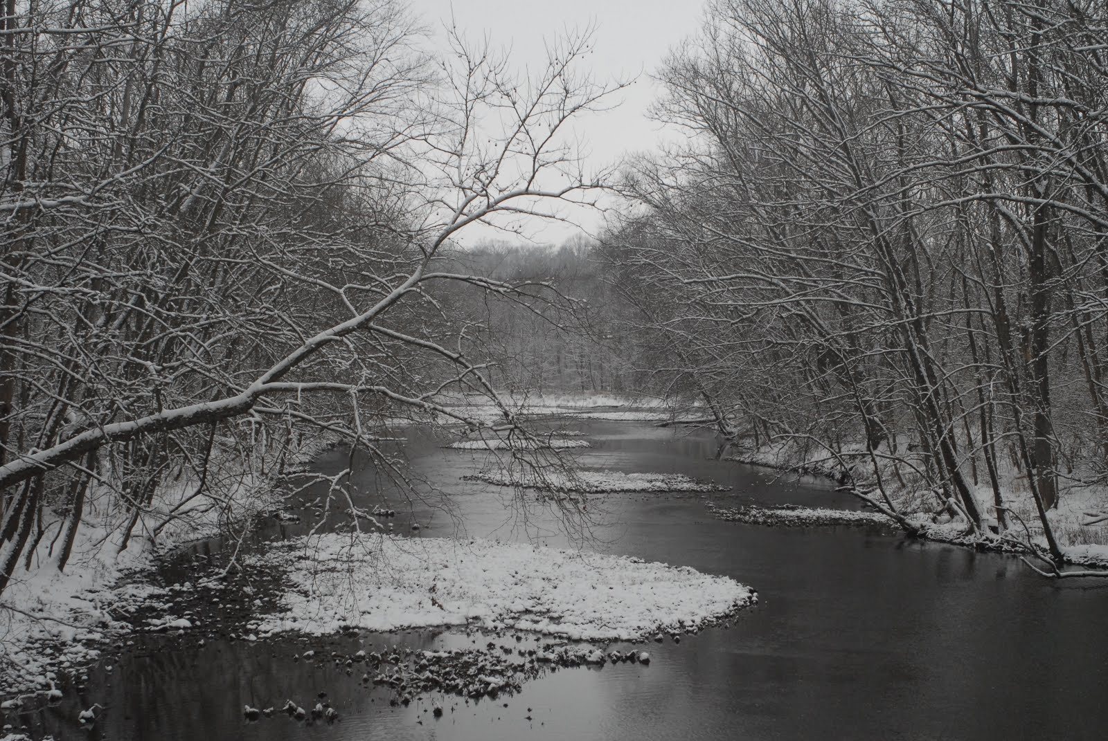 The earliest memory of late last winter is being on the river one foggy day when the far bank drifted in and out view and the bare skeletons of the trees were black and wet against the mist. A scene right out of one of those old black and white film noir movies. The silence on the woods along the river in winter seems deepened somehow by the sound of the river. On windy days the sound of the wind thru the bare treetops makes a music all its own. It's possible to walk a length of river this time of year and not see another living thing. That being said it's also the time of year when some of the most memorable wildlife sightings happen. I remember a river otter (my first one seen around here) running across an ice covered bank to then slide silently into the water without making a ripple. Late winter is also prime time to see an eagle sitting stoically in a tree, still as a statue overlooking the clear winter water.
